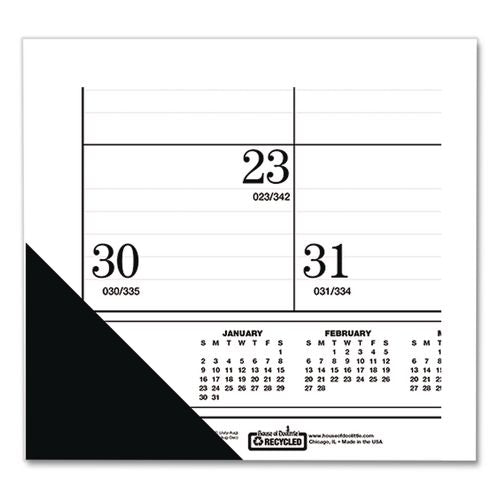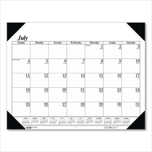 Handy, refillable, economic, one-color academic desk pad features ruled daily blocks to help you keep your notations neat. Full-year reference calendar aids in planning throughout the academic year. Strong, reinforced black leatherette corners help keep pages in place and protected. 14 months, July-August. Made entirely of recycled materials.Note: This is a non-returnable item.