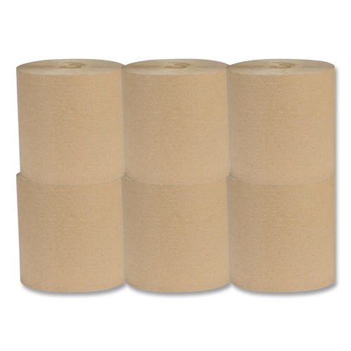 Recycled Hardwound Paper Towels, 1-Ply, 7.88" x 800 ft, 1.8 Core, Kraft, 6 Rolls/Carton