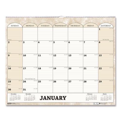 Marbleized background with neutral cream and tan graphics matches any decor. Lightly ruled daily blocks help keep notations neat. Shaded weekends help the workweek stand out. Each week is numbered, and Julian dates/days remaining give you a snapshot of where you are throughout the year. Each spread includes a four-month reference calendar at the bottom of the page, showing two previous and two future months. Made entirely of recycled materials.Note: This is a non-returnable item.