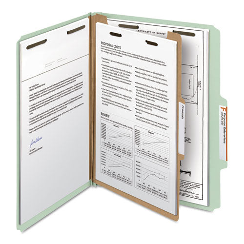 Recycled Pressboard Classification Folders, 3" Expansion, 3 Dividers, 8 Fasteners, Legal Size, Gray-Green, 10/Box