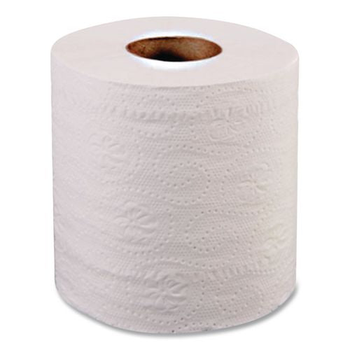 Offer hygienic washroom use for guests with these bath tissue rolls. Provides adequate supply for quick reloading on dispensers. Made from 100% recovered paper fiber that's free of ink, dye, fragrance and chlorine for safe, gentle cleanups. Fits standard roll holders/dispensers.
