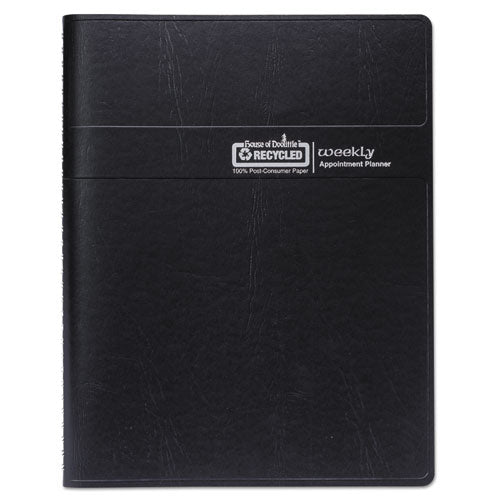 Memo-sized booklet is perfect for use in the office or on the go. Simple, weekly page-spread makes it easy to see your entire week's schedule. Each page contains horizontally formatted days for each day of the workweek and a four-month future-view for long-term planning. Wirebound cover features a black, embossed leatherette finish. Additional page lists important holiday dates over a span of three years. A three-year calendar reference page simplifies long-range planning. Made entirely of recycled materials.Note: This is a non-returnable item.