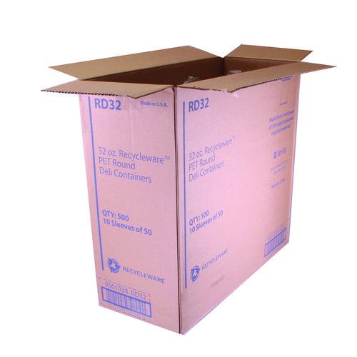 Made from recycled (PCR) PET plastic bottles. The recycled PET material performs well in cool temperature applications and is crack resistant. Durable and leak-resistant. Stylish and crystal-clear for complete product visibility. Paired with Recycleware® Deli Container Lids, provides a snap fit lid application and removal.Note: This is a non-returnable item.