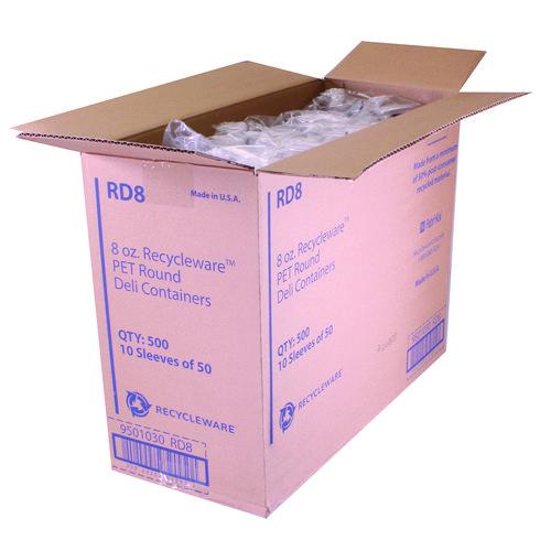Recycleware Round Deli Container, 8 oz, 4.6" Diameter x 1.7" h, Clear, Plastic, 500/Carton
