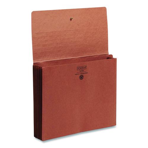 Top tab file folders fit neatly inside without bulging out the side gussets. Protective flap with elastic cord closure ensures that contents stay put. Works with your existing shelf filing system. Double thick front and back panels for extra strength. Expands up to 5.25" for greater storage capacity. Full-height redrope gussets, with rollover tear resistant material reinforcement at top for durability.