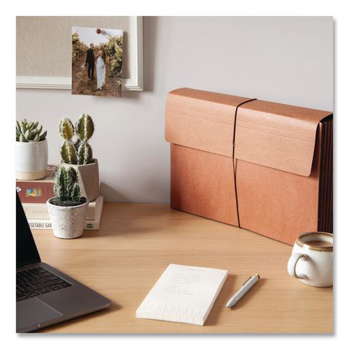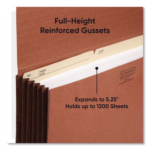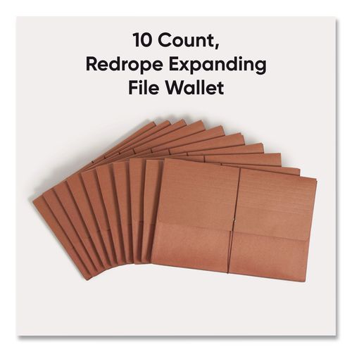 The perfect solution for organization you can take with you, Smead's Redrope Expanding File Wallet is designed to help you organize large amounts of paperwork that need to be transported quickly or file material without a file cabinet. Timeless redrope printed exterior provides a professional appearance, making this expanding file a recognizable favorite for easy filing and organizing. The sturdy flap with an elastic cord closure adds protection and security, allowing you to confidently carry your documents with you wherever you go. Full-height gussets reinforced with tear resistant material at the top provide increased durability. Double-thick front and back panels help protect documents while keeping them upright. Each file wallet expands up to 5.25", providing ample storage. Contains post-consumer material. Designed for shelf filing and on the go.