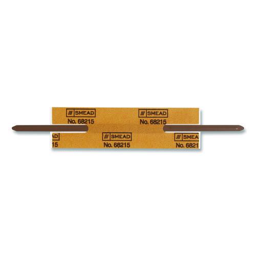 Feel confident knowing your documents are secure. Independent strength tests indicate this reinforced fasteners adhesive has twice the holding power of traditional self-adhesive prong-style fasteners. Simply remove the backing and apply to a variety of filing surfaces. Holds up to 2 inches of paper. Durable 5" self-adhesive strip. Metal with brown enamel finish. Conveniently packaged 5 fasteners per sheet, 20 sheets per box.