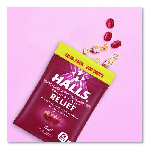 Halls Relief Cough Drops are ready for whatever life throws, or coughs, your way. With 5.8 mg of menthol per drop, these Halls cough drops relieve coughs, soothe sore throats and cool nasal passages to relieve your worst symptoms. This value size pack of cough suppressant drops come in a tasty flavor that is both refreshing and soothing. Whether you're using Halls cough drops for sore throat relief, cough relief or as an oral anesthetic, simply dissolve one drop in your mouth slowly, and repeat every two hours as needed. Once the drop starts to dissolve, it usually starts working quickly. The advanced formula and triple soothing action get you back on your feet so that you can do the things you need to do. Halls Relief menthol cough drops are formulated for adults and children five years and older. Each bag contains 200 menthol cough drops, giving you enough to stock your home or office during cold and flu season. The bags are resealable to keep the cough drops fresh and effective. The resealable packaging also makes it easy to toss into your bag, travel pack or desk drawer, giving you convenient access when symptoms strike.Note: This is a non-returnable item.