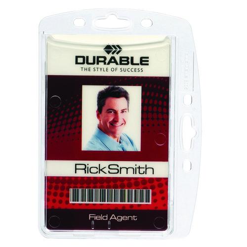 The single-card replacement card holders from DURABLE® are designed to keep one ID card secure and visible. The high-quality material is resistant to wear and tear, ensuring that your badge holder remains in excellent condition even with frequent use. Designed to withstand extreme weather conditions, the badge holder is UV-resistant, cold-crack-resistant down to -4° F, and features a watertight zip-locked enclosure to guard against water damage. This durability is essential for environments where ID cards are exposed to various climates. Whether in construction, manufacturing, or other demanding fields, this card holder stands as a trustworthy companion, prioritizing both functionality and user convenience.