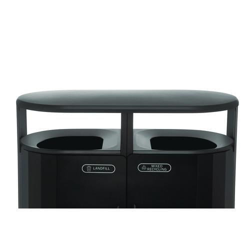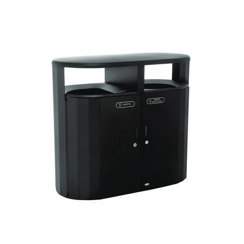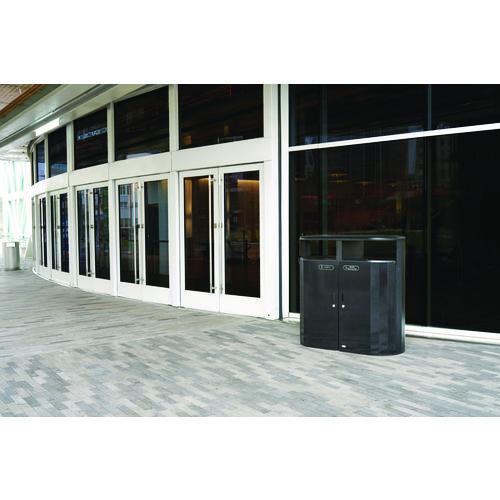 The Resist Dual Stream Trash and Recycling Container is designed to maintain high-quality aesthetics under the most extreme outdoor conditions. Proprietary fan design resists up to 500 lbs of sustained blunt force. An advanced coating defends surfaces from graffiti and everyday stains. Special coating helps resist rust, corrosion and fading. The permanent rain hood prevents unwanted environmental debris from entering the container.Note: This is a non-returnable item.