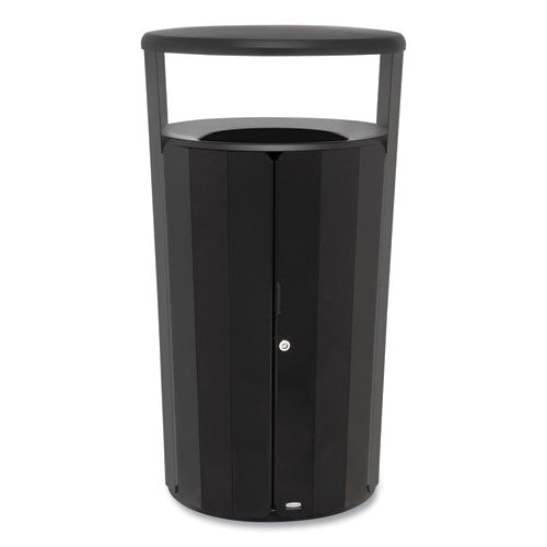 The Resist Round Waste Container is designed to maintain high-quality aesthetics under the most extreme outdoor conditions. Proprietary fan design resists up to 500 lbs of sustained blunt force. An advanced coating defends surfaces from graffiti and everyday stains. Special coating helps resist rust, corrosion and fading. The permanent rain hood prevents unwanted environmental debris from entering the container.Note: This is a non-returnable item.