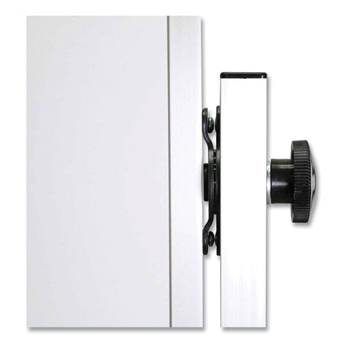 Constructed for strength and durability, Ghent's Reversible Magnetic Porcelain Whiteboard with aluminum frame and stand is a versatile mobile communication tool for a range of environments. The scratch- and dent-resistant porcelain-on-steel surface ensures that your dry erase board never absorbs ink, eliminating the possibility of staining and ghosting; and as the surface is magnetic, you can also incorporate magnetic clips, characters and a variety of board accessories to accomplish any number of display and instructional goals. The reversing mechanism simplifies flipping from one surface to the other, and the strong steel positioning locks clamp-down securely, allowing you to set the surface fully vertical or to any angle in-between. Robust aluminum frame and stand deliver reliable performance, and the stand's leg braces provide extra stability. Twin-wheel swivel casters keep you mobile; and by making use of the two locking casters, you can keep the board in place where you intend to use it. Ships to you in Ghent's worry-free packaging, which is designed specifically for keeping mobile dry erase boards safe during shipping.Note: This is a non-returnable item.