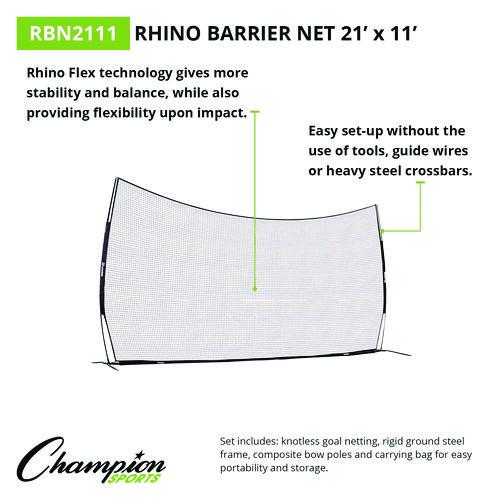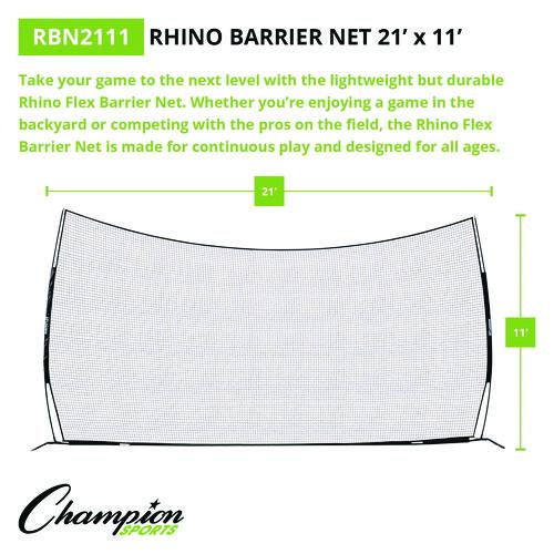 The Champion Sports Rhino® Flex lacrosse backstop barrier net is a must-have piece of equipment for coaches, parents and athletes. This net is deal for players of all ages and skill levels, the large size barrier net is a great goal backstop, so less game or practice time is wasted chasing down balls. It can also serve as a portable field divider, protective sideline barrier, lacrosse goal or hitting surface. The barrier net is designed with a rigid steel ground frame for enhanced durability and stability. To further protect players, the barrier net uses knotless netting, which is smoother and much less abrasive than knotted netting. This net can be assembled and taken down in mere minutes without the use of tools. Large yet surprisingly lightweight, the backstop net can be easily moved by coaches or players and positioned wherever it's needed. Use it for practice in the backyard, on the training field or during a live game. A travel bag is included for convenient storage and carrying!Package Includes: Travel BagNote: This is a non-returnable item.