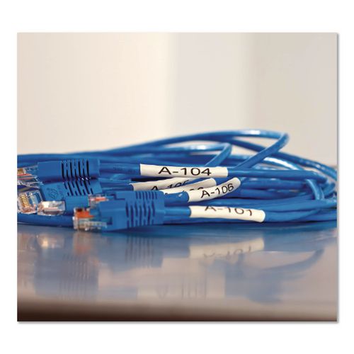 Rhino Permanent Vinyl Industrial Label Tape, 0.37" x 18 ft, White/Black Print