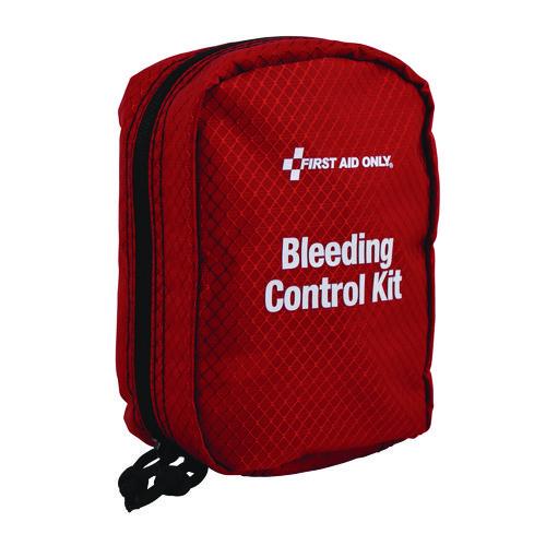 This bleeding control kit contains the critical essentials for treating limb, chest, and torso wounds. The included windlass tourniquet, hemostatic gauze pad, and chest seal empowers bystanders with the lifesaving tools to help save a life in the critical first minutes of a bleeding emergency. The red, fabric pouch is easily identifiable, lightweight, and mobile for efficient travel to the trauma site.Package Includes: (1) Bandage Shears; (1) Bleeding Control Instructions; (2) Chest Seals; (1) Elastic Pressure Strap; (1) Emergency Blanket; (1) Fabric Pouch; (1) Israeli Bandage; (1) Marker; (4) Nitrile Exam Gloves; (2) 5" x 9" Trauma Pad; (1) Windlass Tourniquet