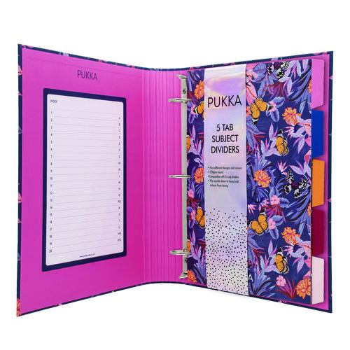 The Pukka Pads 3-ring binder measures 12.4 x 10.8 inches and is pre-loaded with a matching 5-part assorted subject divider and is ready to go! So, whether you're using it to keep your school or college notes organized or for the workplace, we have you covered. The front inner cover is printed with an index page and the back inner cover is printed with a personal details/planner page. People expect more from Pukka Pad products and that's what they get.Package Includes: 5-Part Assorted Subject DividersNote: This is a non-returnable item.