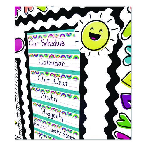 Decorate your learning space with colorful classroom décor using the Carson Dellosa Bulletin Board Borders! Featuring one large, durable roll of scalloped bulletin board borders, cut and layer the bulletin board border to add dimension to any display with ease. Made from durable but flexible paper, the border is a great way to add an eye-catching pop of color to white board, cork board, black board, locker, desk, and other classroom décor or office décor—perfect for any occasion and season!