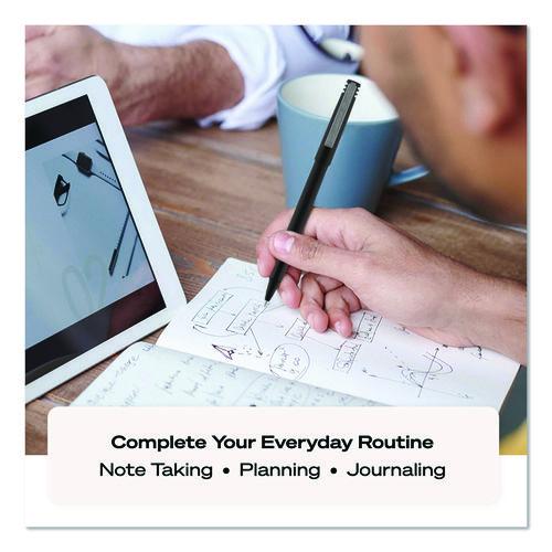 Stock your office, home or classroom with Roller Rollerball Stick Pens from uni-ball featuring strong, long lasting tips. These rollerball pens deliver the silky-smooth glide of a fountain pen without smudging for effortless writing. Roller pens produce neat and precise lines for intricate writing, making it easy to create super fine details in your drawings and diagrams. Capped roller pens are useful for a variety of tasks from note taking to signing checks and legal documents to uniquely embellishing fun and creative writing projects. Innovative uni Super Ink technology forms a strong bond with the paper, protecting from water, fading and fraud. Made from recycled material.