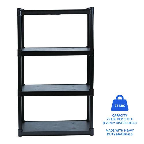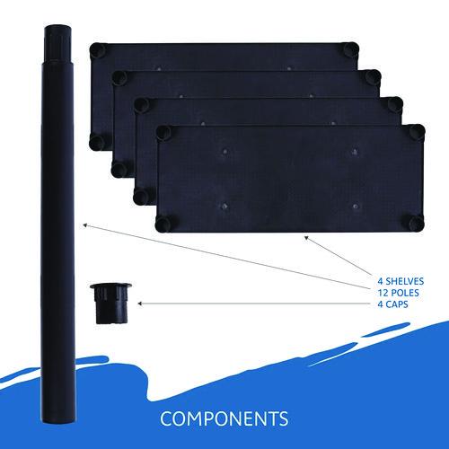 Ideal for any application, this heavy-duty, commercial grade shelving won't scratch, dent or rust. Easy snap-together assembly in five minutes with 16" clearance between shelves. Washable. Wall anchor included.Package Includes: Uprights; Trim Caps; Wall Anchors (5-Shelf)