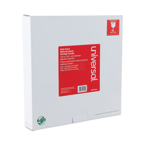 Round Wood Wall Clock, 12.75" Overall Diameter, Cherry Case, 1 AA (sold separately)