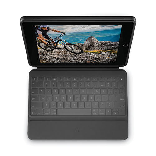 This Logitech Rugged Folio is a slim keyboard case with drop protection that exceeds demanding tests. It uses smart connector technology, so no pairing or charging is required. High performance spill and dirt resistant sealed keys make it the perfect tool for on the go work. Offers magnetic smart cover supports auto wake and sleep function. This is compatible with 10.2", 7th/8th generation iPad.