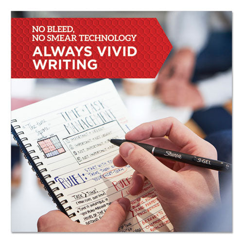 The power of Sharpie is now in a gel pen with the Sharpie S-Gel. With no smear, no bleed technology and bold, best-in-class ink, this Sharpie pen delivers always-vivid writing. It's a high-performance gel pen with a sleek, professional look that makes it a writing instrument you won't want to loan out. And the contoured rubber grip makes for comfortable writing during any task. Available in multiple point sizes, barrel finishes and gel ink colors, Sharpie S-Gel offers a smooth writing experience perfect for homes, schools, or offices.