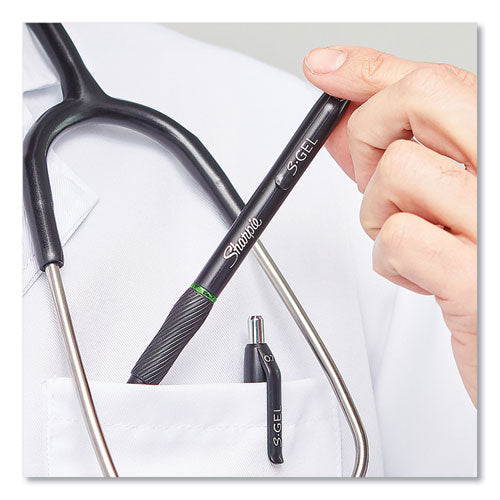 The power of Sharpie is now in a gel pen with the Sharpie S-Gel. With no smear, no bleed technology and bold, best-in-class ink, this Sharpie pen delivers always-vivid writing. It's a high-performance gel pen with a sleek, professional look that makes it a writing instrument you won't want to loan out. And the contoured rubber grip makes for comfortable writing during any task. Available in multiple point sizes, barrel finishes and gel ink colors, Sharpie S-Gel offers a smooth writing experience perfect for homes, schools, or offices.