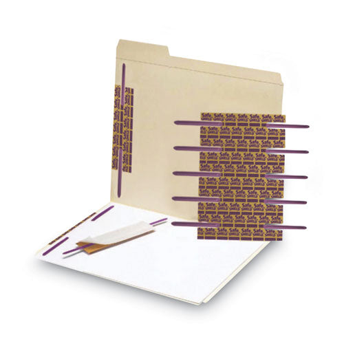 Protect your documents and fingers with patented SafeSHIELD® Coated Fastener Technology - the ultimate solution to fastener issues, including paper tears, finger cuts and excessive fastener crinkling. Feel confident knowing your documents are secure by using reinforced self-adhesive fasteners. To use, simply remove the backing from the adhesive strip and apply to a filing surface. The superior adhesive strength will secure the fastener and its contents on a variety of filing surfaces. Permanent adhesive.