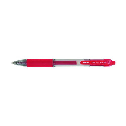 Sarasa Dry Gel X20 Gel Pen, Retractable, Fine 0.5 mm, Red Ink, Clear/Red Barrel, 12/Pack
