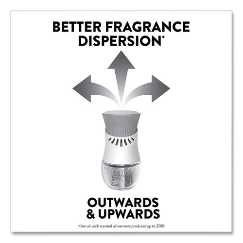 Leave a lasting impression on guests and ensure a consistent experience with Air Wick Scented Oil Refills with Essential Oils. Keep supply rooms stocked with the pleasant scents your guests come to associate with your business. Get up to 60 days per refill, on the lowest warmer setting, of natural-smelling fragrance with essential oil-infused formulas. Easily refill the Air Wick plug-in warmer by unscrewing the cap and inserting the refill until it clicks. Adjust the warmer settings to ensure the optimal fragrance for each room. Enhance entrances, common areas, offices, breakrooms and guest rooms with pleasant scents.