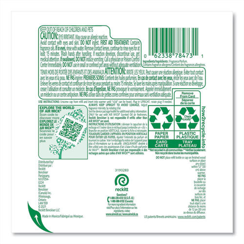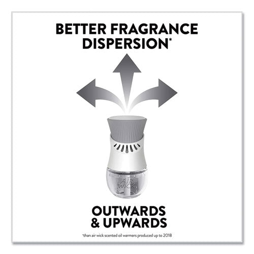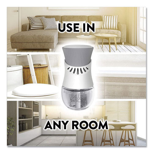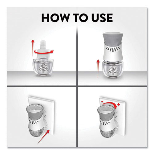 Leave a lasting impression on guests and ensure a consistent experience with Air Wick Scented Oil Refills with Essential Oils. Keep supply rooms stocked with the pleasant scents your guests come to associate with your business. Get up to 60 days per refill, on the lowest warmer setting, of natural-smelling fragrance with essential oil-infused formulas. Easily refill the Air Wick plug-in warmer by unscrewing the cap and inserting the refill until it clicks. Adjust the warmer settings to ensure the optimal fragrance for each room. Enhance entrances, common areas, offices, breakrooms and guest rooms with pleasant scents.
