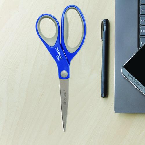 Contoured soft grip handle for maximum comfort. Stainless steel blades. Ideal for shared/common areas such as office, classroom and breakroom. Westcott offers a wide range of anti-microbial protected products. Handles contain an antimicrobial agent to help inhibit the growth of bacterial stains and odors. It's ideal for products that are shared around the home, office or school.