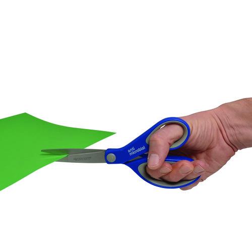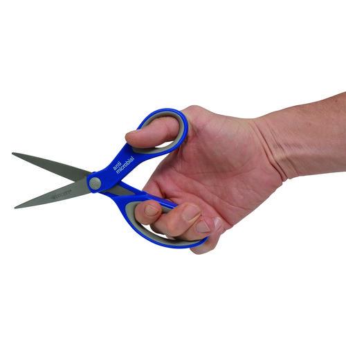 Contoured soft grip handle for maximum comfort. Stainless steel blades. Ideal for shared/common areas such as office, classroom and breakroom. Westcott offers a wide range of anti-microbial protected products. Handles contain an antimicrobial agent to help inhibit the growth of bacterial stains and odors. It's ideal for products that are shared around the home, office or school.