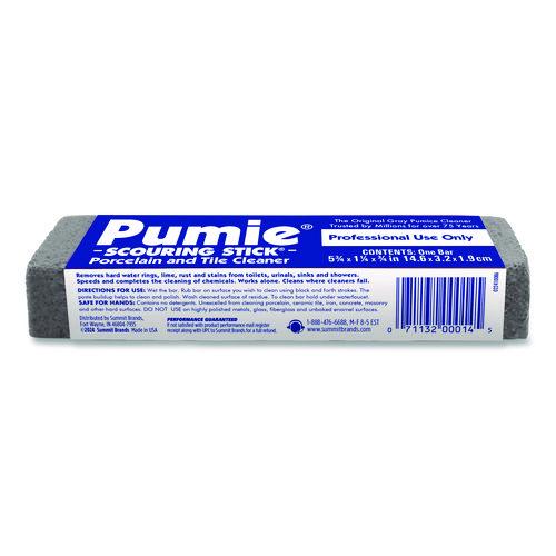 Pumie® Scouring Stick® tackles tough stains and buildups, excelling as a toilet scrubber and septic-safe cleaner. Removes stubborn toilet bowl rings and stains without harming tubs, sinks, and showers. This versatile tool also acts as a powerful rust stain remover, restoring bathtubs and surfaces to a spotless state. Effectively combats hard water stains and limescale thanks to its natural abrasive action. Free from harsh chemicals, Pumie® is a safe, non-toxic choice and aligns with the growing demand for cleaning solutions that are both effective and mindful of health impacts. Pumie® has been a trusted choice for more than 75 years among commercial janitorial and sanitation professionals, ensuring it's more than capable of handling the toughest stains and buildups.Package Includes: (12) Retail Units With UPC Individually Wrapped