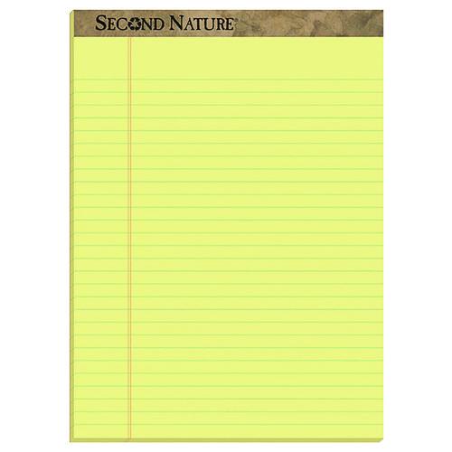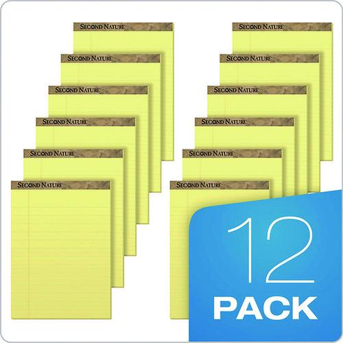 Second Nature Recycled Ruled Pads, Wide/Legal Rule, 50 Canary-Yellow 8.5 x 11.75 Sheets, Dozen