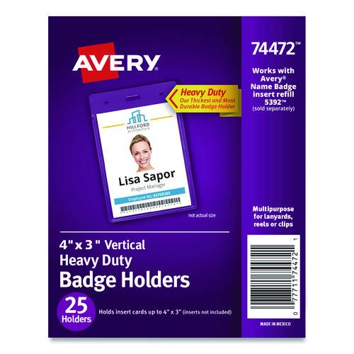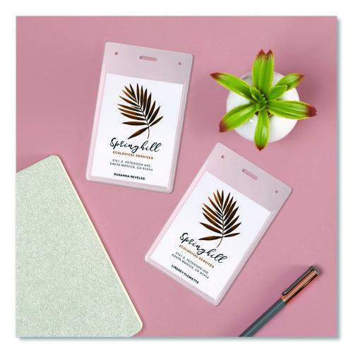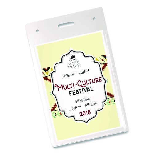 Secure design keeps badges from falling out. Heavyweight flexible plastic is ideal for permanent or temporary identification. Protect security access control cards or create name badges. Multi-use styles are pre-punched to accommodate lanyards and reel clips. Use with Avery® Name Badge Inserts (5390 and 5392). Easy to Customize with free templates and designs using Avery Design & Print online.