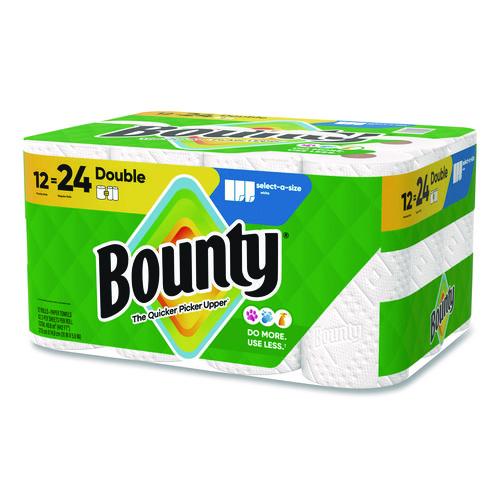 Spilled your drink? Quick! The Quicker Picker Upper. Be ready to tackle messes with Bounty Paper Towels! Each sheet is 2x more absorbent and picks up spills and messes quicker vs. the leading ordinary brand so you can use less. Bounty Select-A-Size towels are versatile, so you can choose your sheet size depending on your mess. Bounty products are proudly made with a commitment to creating solutions for a sustainable future. That's why for every tree used, at least two are regrown so you can conveniently and confidently clean messes in the kitchen and around the house. Bounty always has your back in and out of the kitchen so whether it's juice on the counter or ice cream on the table, we make sure spills won't stand a chance.