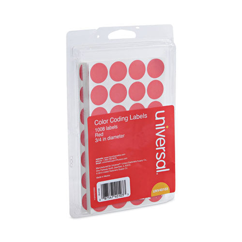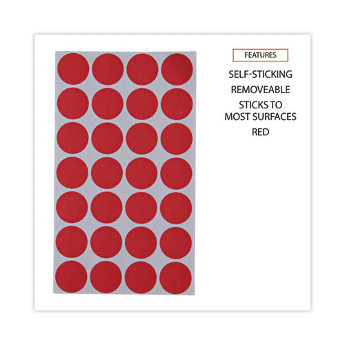 Self-Adhesive Removable Color-Coding Labels, 0.75" dia, Red, 28/Sheet, 36 Sheets/Pack