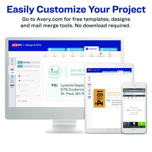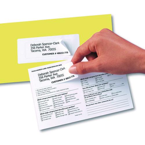 Make it easy for recipients to respond to you, on the double. These send and reply piggyback labels can be used as an address label, then peeled off and used as a return address label. Returning packages, replying to invitations and responding to questionnaires has never been more convenient. And with free templates and designs from Avery® Design & Print, designing your labels is a breeze. Just print and apply these double-duty labels to your next mailing. Outer dimension of label: 1 5/8" x 4", inner dimension of label: 1" x 3".