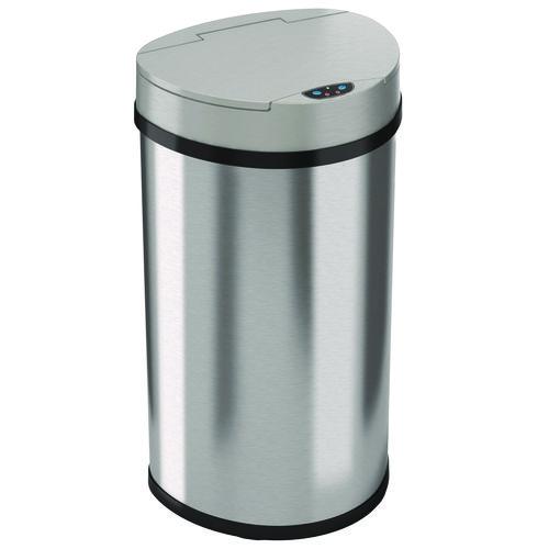 Sensor Trash Can, Half-Round Cylinder, 13 gal, Plastic/Stainless Steel, Silver