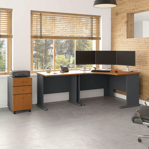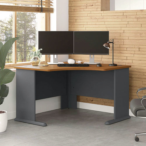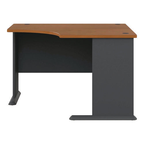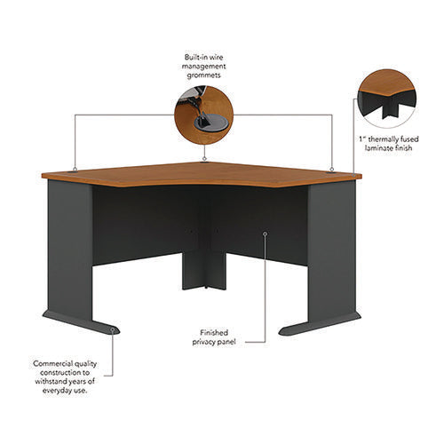 Series A Collection 48W Corner Desk is designed with a versatile C-Leg table design which permits easy configurations. Constructed with 100% thermally fused laminate for durability and superior resistance to scratches and stains. Use the 48W Corner Desk to connect Credenzas and Desks to expand your desk design. You'll enjoy the integrated wire management located within both desktop and leg grommets to conceal cables to keep your desk area uncluttered. Sturdy molded ABS feet include adjustable levelers to compensate for uneven floors.Note: This is a non-returnable item.