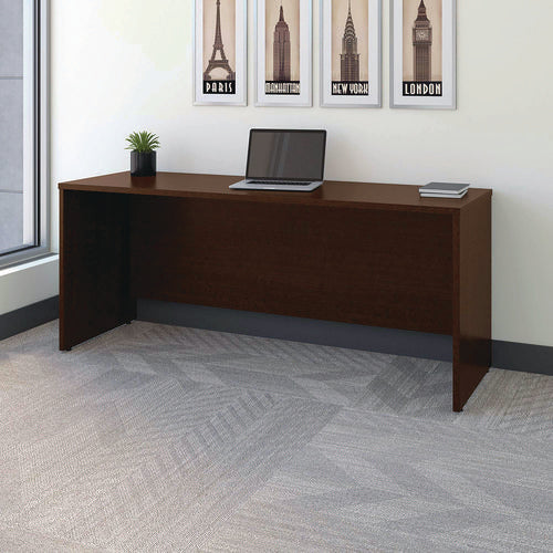 Series C Collection 72W Credenza Shell with open leg table design provides flexible solutions. Constructed with 100% thermally fused laminate for durability and superior resistance to scratches and stains. Integrated wire management located in desktop grommets conceals cables. Add the 72W Hutch for storage or as a stand-alone desk component in a limited space. Accepts 2- or 3-Drawer Mobile Pedestals for under the desk file storage. Includes adjustable levelers for uneven floors.Note: This is a non-returnable item.