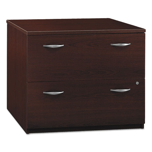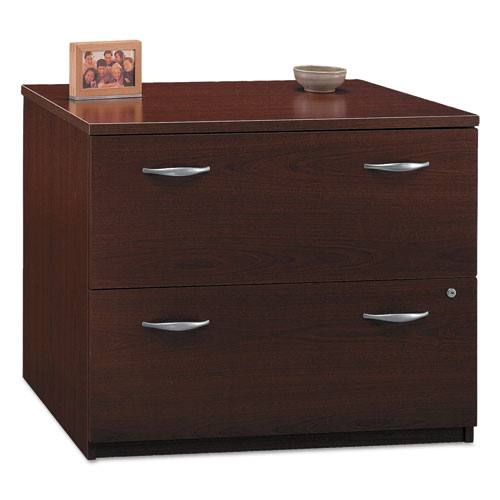 Series C 36W 2-Drawer Lateral File for classic styling with clean lines. Enjoy a convenient work and storage solution with file drawers that accommodate letter, legal, and A4 sizes. Full-extension ball bearing slides allow easy access and interlocking drawers prevent against tipping. Utilize the Lateral Files matching height with Series C desks components to further expand your work surface. Constructed with 100% thermally fused laminate for durability and superior resistance to scratches and stains.Package Includes: (2) Pull Handles; (1) Lock; (2) KeysNote: This is a non-returnable item.
