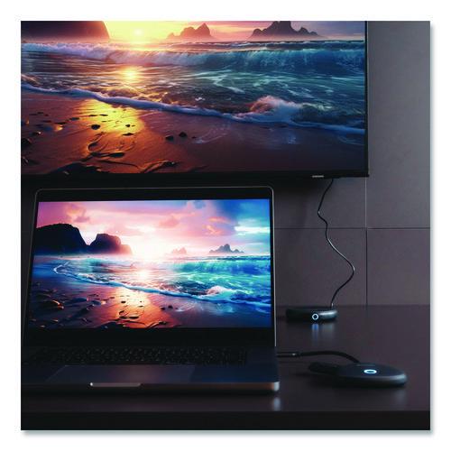 Our Share My Screen 4K USB-C wireless display adapter is a game changer, providing plug and play 4K HDMI output with pristine clarity at 30 Hz. This wireless display adapter allows you to easily connect and share clear, crisp content from your laptops, tablets, and Smartphones to 1080p monitors or televisions. This easy pairing ensures accessibility for all levels of technical expertise and universal compatibility with a wide range of USB-C enabled devices. The adapter's additional USB-A port makes it easy for you to connect other essential devices like your mouse or keyboard. With over 30 feet of wireless range, this adapter's compact and portable design is ideal if you are presenting, streaming, or gaming on-the-go!