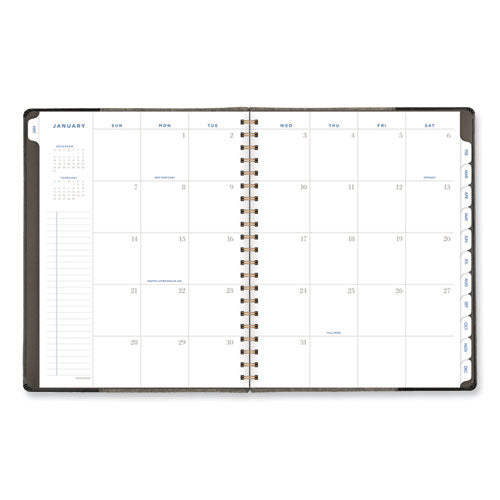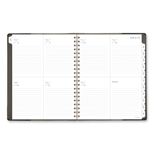 Give your plans a professional, polished edge. The Signature Collection Weekly/Monthly Planner features a contemporary two-tone, two-texture cover design with bronze foil accents to help you stay organized in style. But this planner isn't just a pretty face, it's built for real life-guaranteed to last all year. Plan your week, track appointments and prepare for events on ruled weekly planning pages, and use the extra space for notes and reminders. At the same time, keep an eye on the big picture. Tabbed monthly overviews let you look ahead and get a jump on your future plans. Special pages help you do more with your time. Maximize your productivity with the included holiday list, three-year reference calendar, events calendar, contact information pages and a generous notes section. As you plan away, the flexible, durable cover keeps everything in shape, while the twin-wire binding prevents snags when you throw it in your bag. All the way through, high-quality paper with superior ink-bleed resistance keeps your planning pages neat. Use the included double-sided poly pocket to keep any loose materials you might collect along the way.Note: This is a non-returnable item.