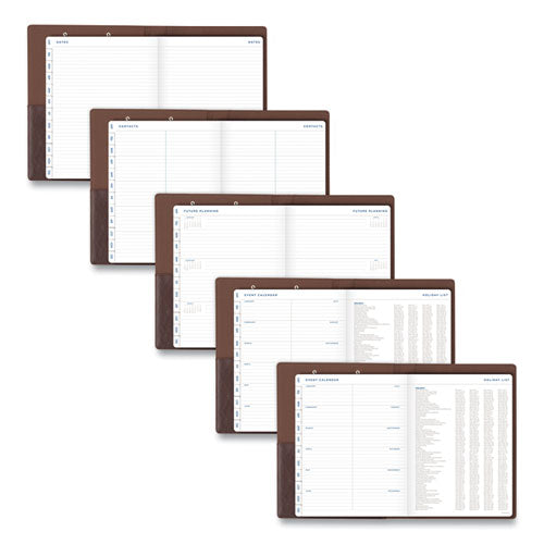 Distressed leather-like covers with stitched edges for a polished look that's perfect for modern professionals. A clipboard on the front cover is useful for securing loose papers and notes while on the go. The included monthly planner's 13 month date range runs from January January.Note: This is a non-returnable item.