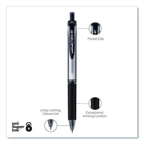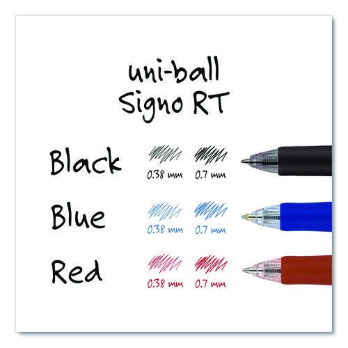 Create clear, crisp lines with Signo RT Retractable Gel Pens from uni-ball with a stainless steel tip that resists bending and breaking. Even-flowing, pigment-based gel ink delivers a smooth writing experience with long-lasting, vibrant color. Use these gel stick pens for everyday writing tasks, list making, note taking and check signing. Innovative uni Super Ink technology effectively entraps the gel ink into the paper, producing fraud, fade and water-resistant documents. A soft rubber grip helps you continue writing without fatigue while maintaining precision and detail throughout your tasks, while a translucent ink window indicates the level of gel ink remaining, so you don't run out unexpectedly.