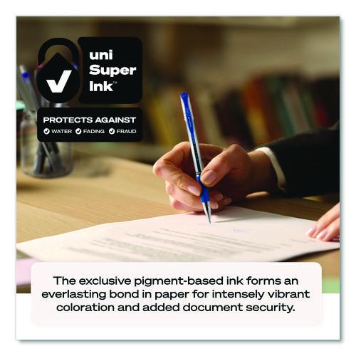 Stock your office, home or classroom with Gel Grip Stick Pens from uni-ball featuring a 0.7mm medium point with a stainless steel tip that resists bending and breaking. Pigmented gel ink technology offers an exceptionally smooth, even flowing writing experience. Use these gel stick pens for everyday writing tasks, list making, note taking and check signing. Innovative uni Super Ink technology effectively entraps the gel ink into the paper, producing fraud, fade and water-resistant documents. The 0.7mm medium point produces bold and vibrant gel ink color every time. A dimpled grip offers exceptional comfort as you continue writing, while a translucent ink window indicates the level of gel ink remaining, so you don't run out unexpectedly. Improve your everyday writing experience with these stick gel pens that deliver a rich pigmented color.