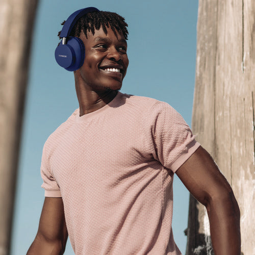 These silicone headphones are Bluetooth compatible with a hands-free mic. Comes with comfort cushions, and the size is fully adjustable.