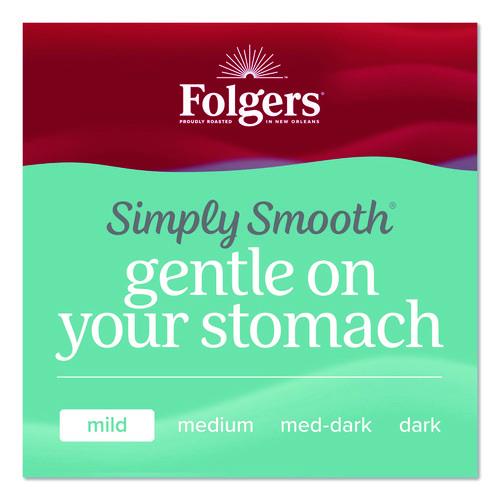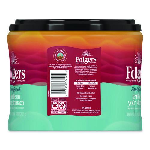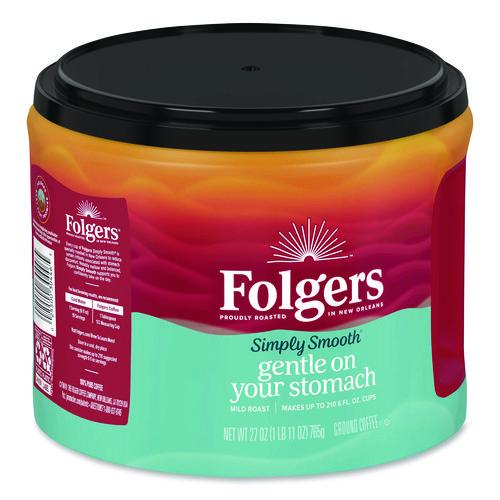 Smooth out the wrinkles of your morning routine with a mug of Folgers Simply Smooth coffee, a mild roast coffee that delivers mellow and balanced flavor specially roasted to reduce certain irritants associated with stomach discomfort. This mild blend is packaged in an AromaSeal canister designed to help maintain freshness and contains up to 210 suggested strength 6-fl oz servings. As a ground coffee blend, you can brew yourself a cup with virtually any coffee maker. Stock up now so you can sip with confidence, knowing that the Best Part of Wakin' Up was made with gentleness in mind.Note: This is a non-returnable item.